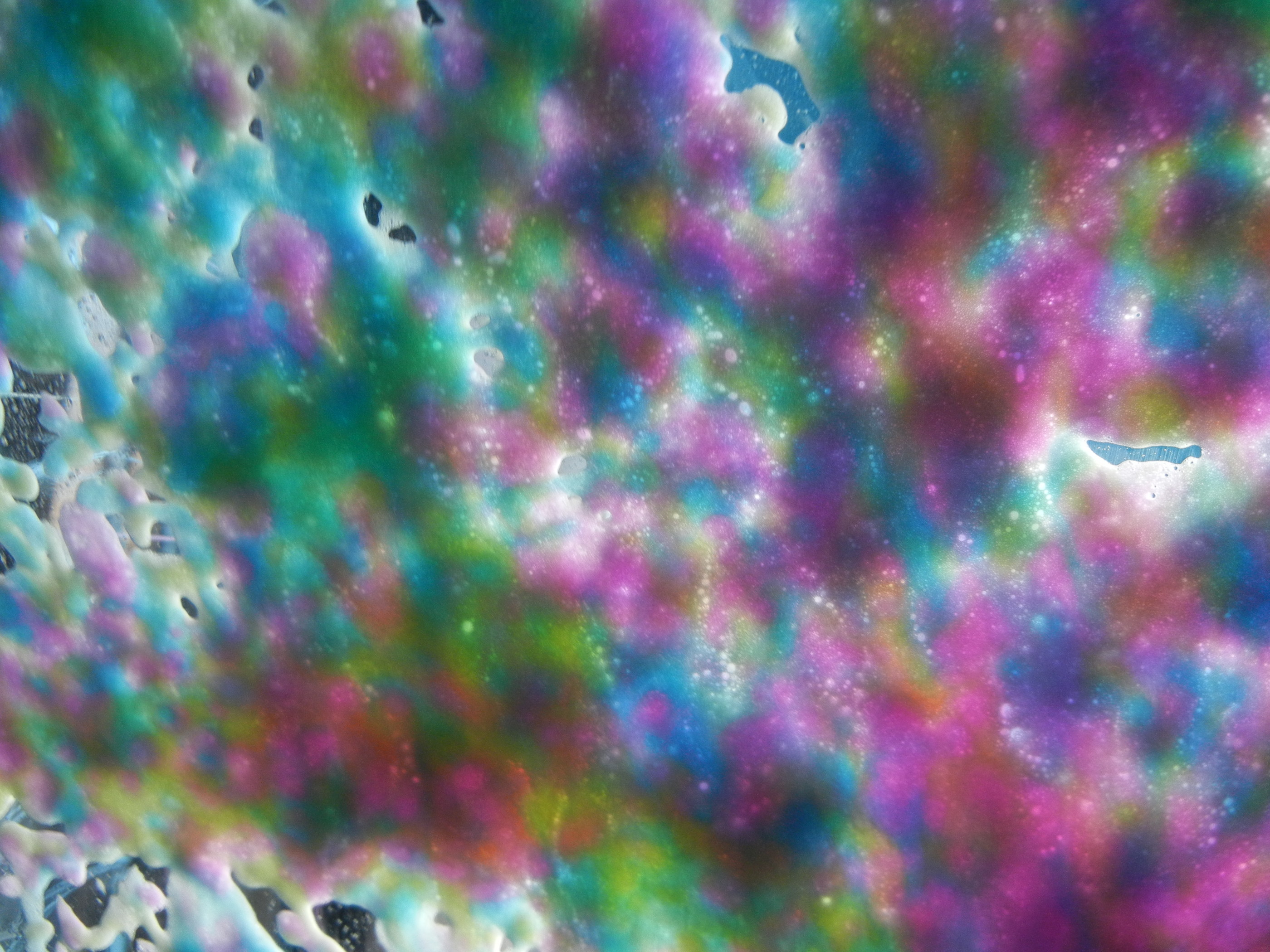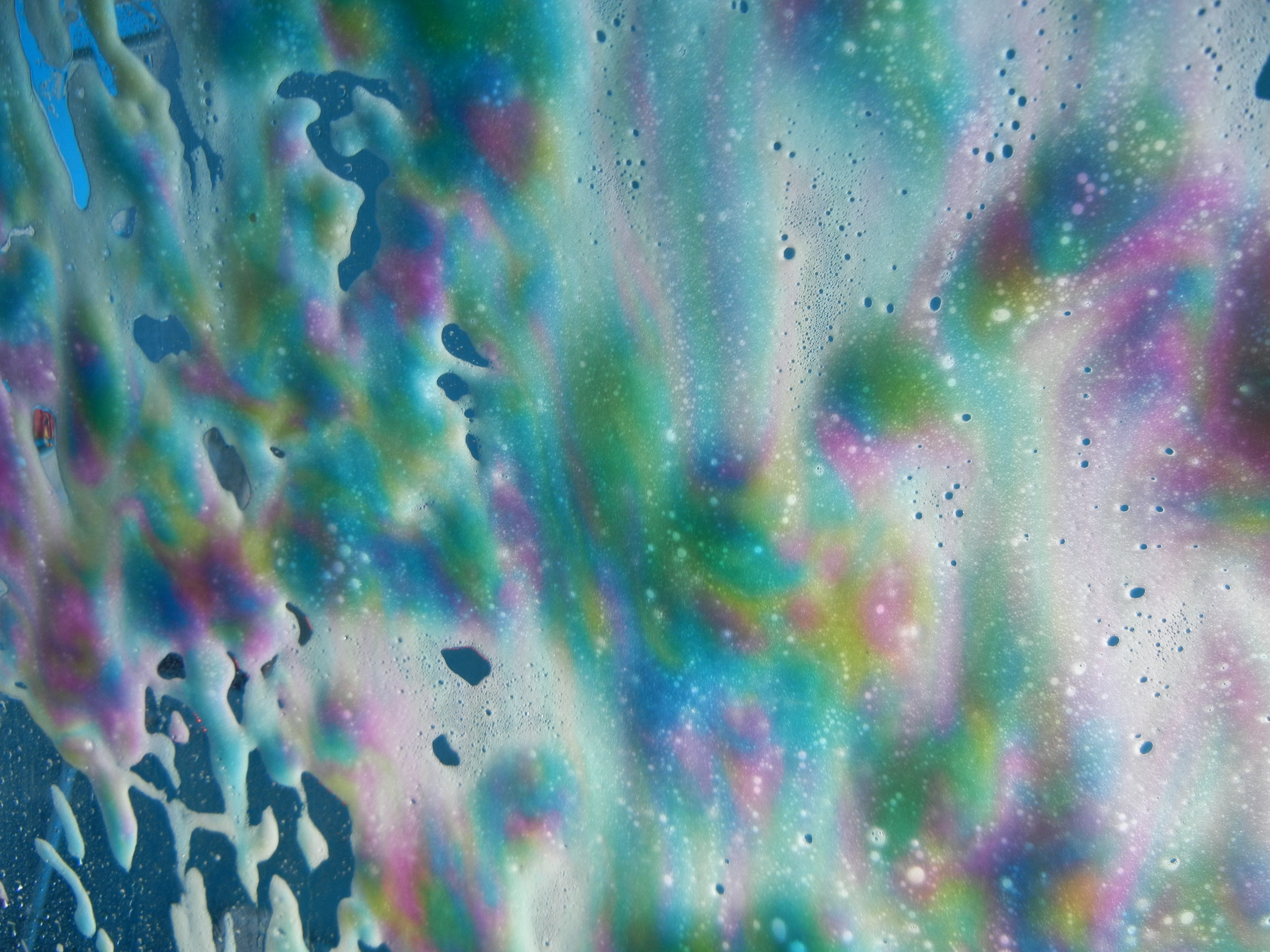 I had to think what is was first, especially with all those different colours, and then it clicked that it was soapsuds on a windscreen. Wonderful colours, almost rainbow like.