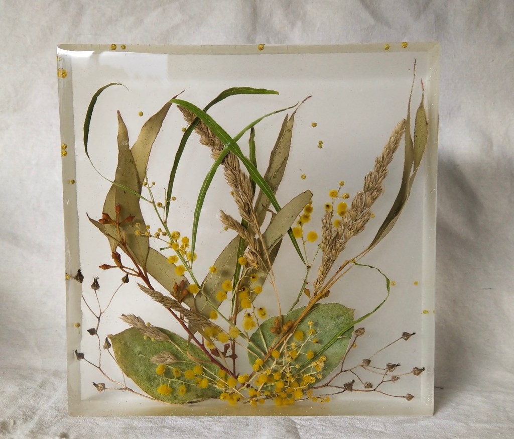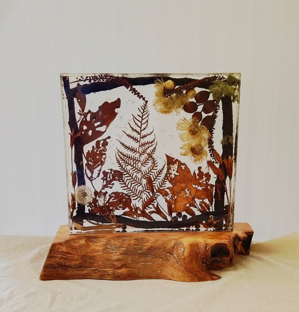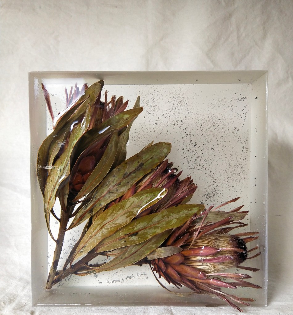 In 2019 I started drying flowers and setting them in resin, now I enjoy finding so many different and interesting things to preserve in resin; flowers, shells, leaves, bird nests, fallen branches, pebbles, really anything that catches my whimsy.